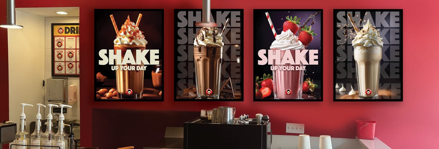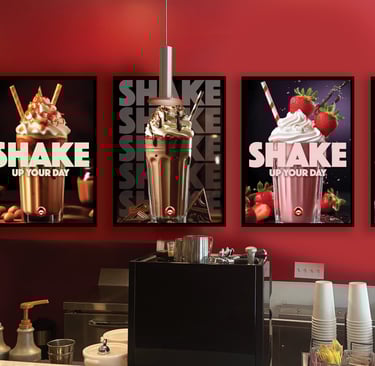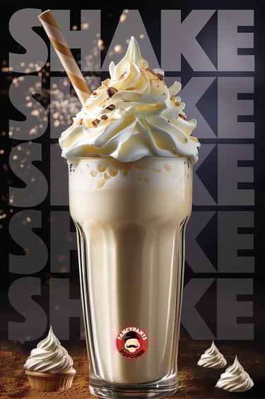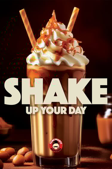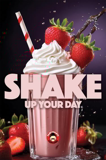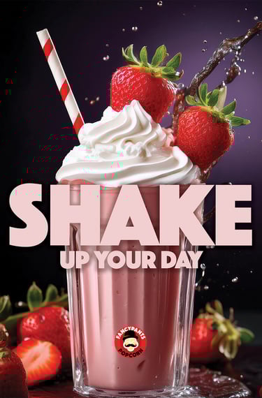 To help Fancypants Popcorn promote their milkshakes, I created a playful series of posters designed to live on their shop walls and catch eyes from across the counter. Each poster highlights a different shake flavor with bold colors, mouthwatering photography, and fun typography that matches the brand’s quirky vibe.